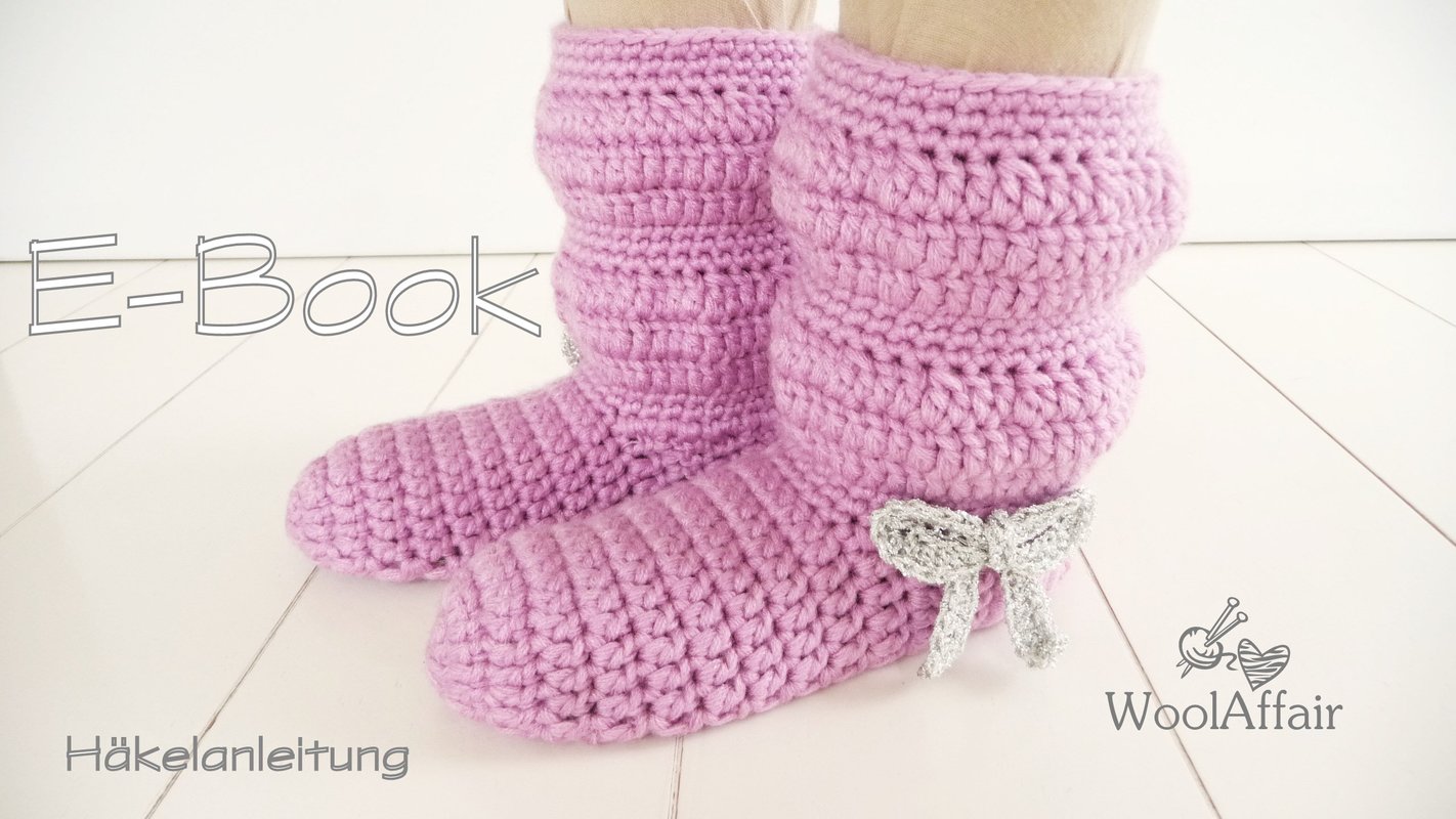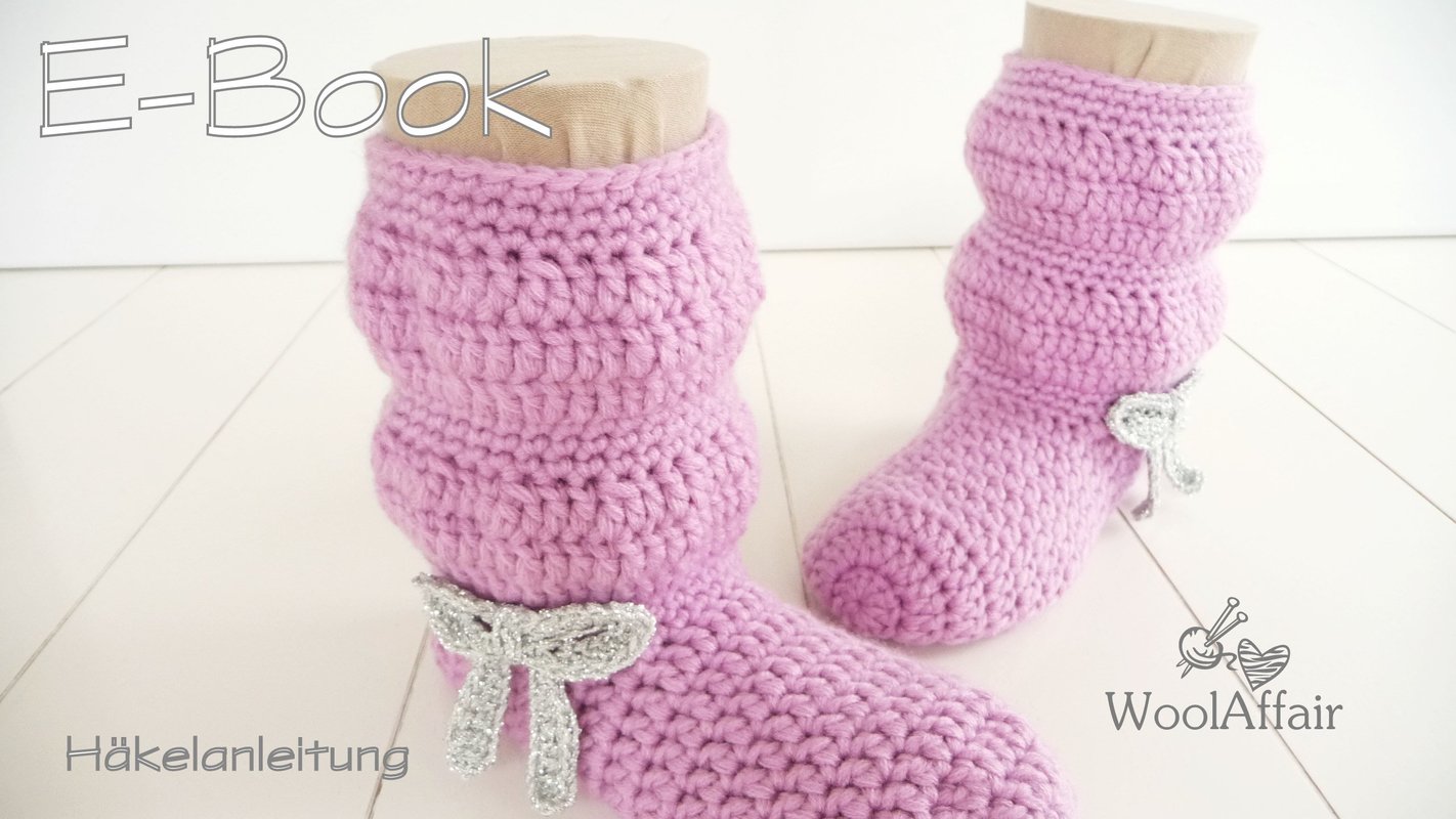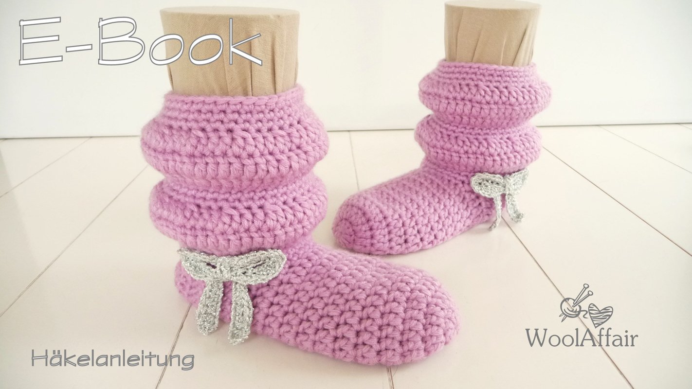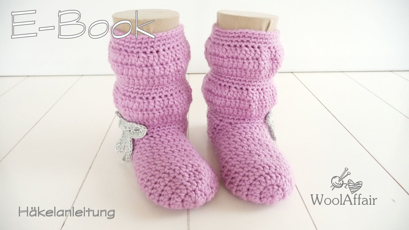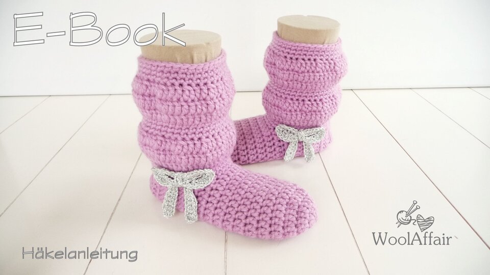 Anleitung für Häkel-Hausschuhe bzw. Kinderstiefelchen in den Größen 29/30, 31/32, 33/34 und 35/36.