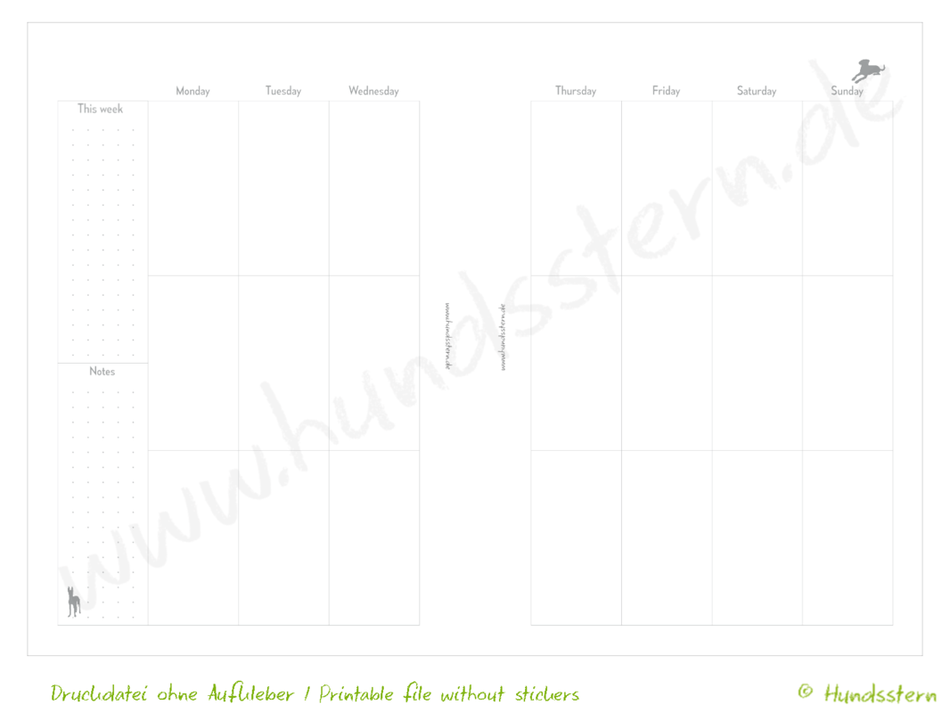Für Hundefans: Mit diesem Wochen-Kalender behalten Sie den Überblick über Ihre eigenen oder die Termine Ihres Hundes.
