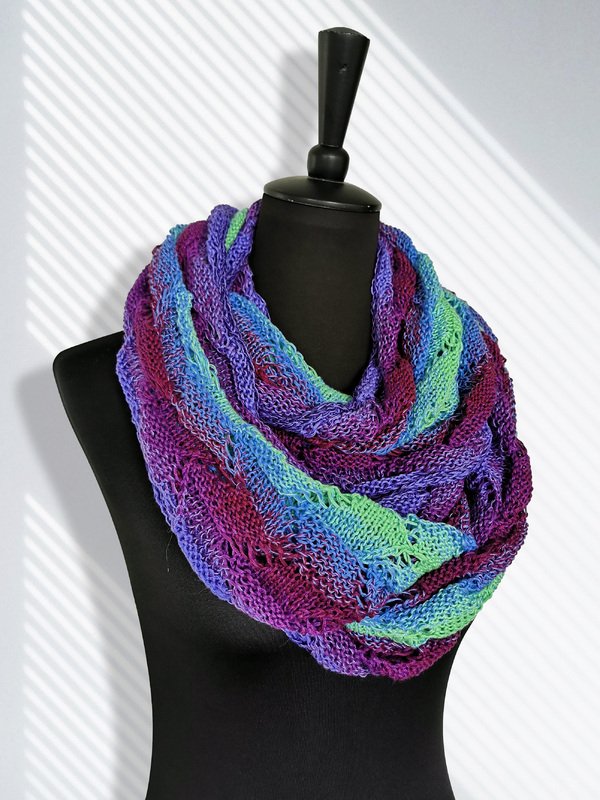 Die Anleitung enthält neben der schriftlichen Anleitung auch eine Strickschrift und ein Fototutorial. Das Muster ist reversibel, das bedeutet, es ist von beiden Seiten gleich, so dass man keinen Anfang und kein Ende bei diesem Möbiusschal feststellen kann. Dies macht den Schal besonders reizvoll.