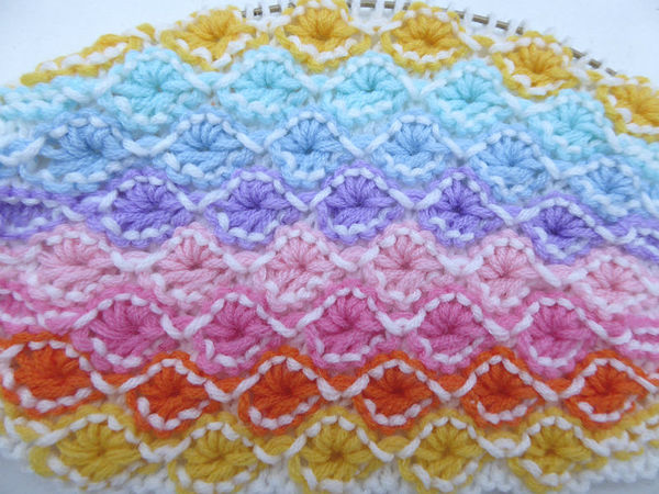 Tausend bunte Küsschen sorgen auf dieser Babydecke für gute Laune. Die Strickanleitung beinhaltet eine Textbeschreibung des Musters in Reihen und Runden und entsprechende Strickschriften.