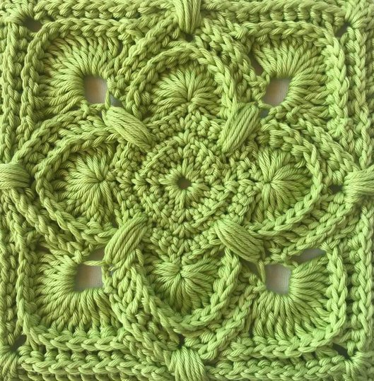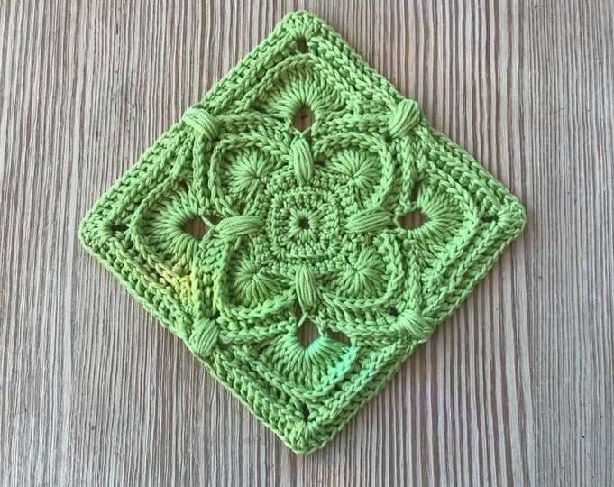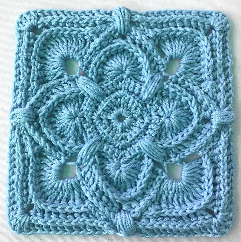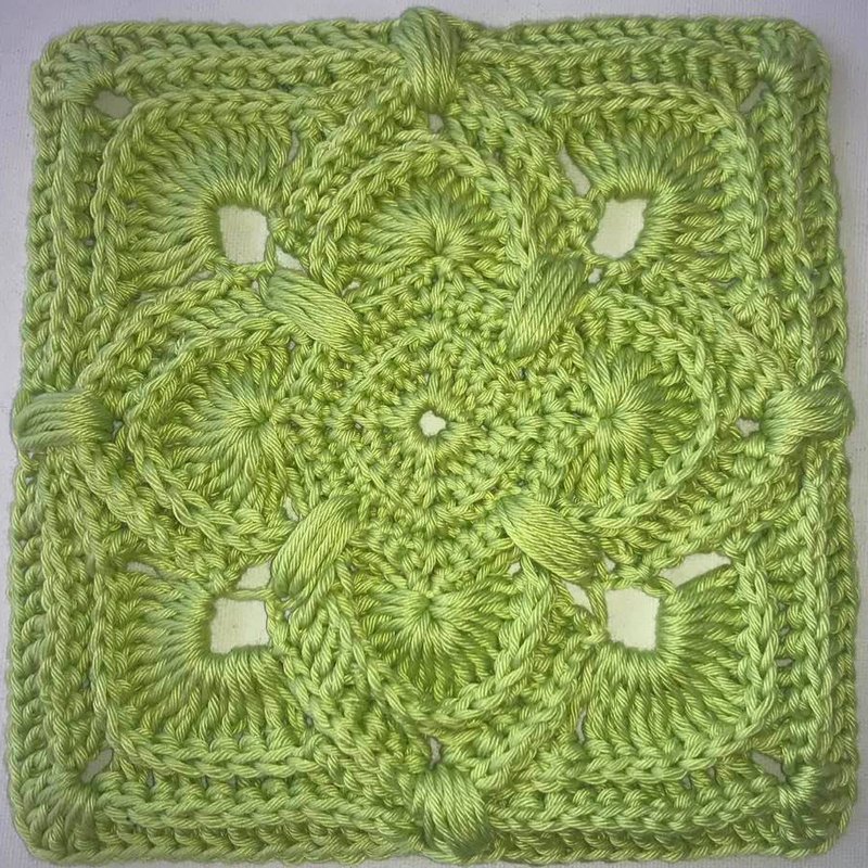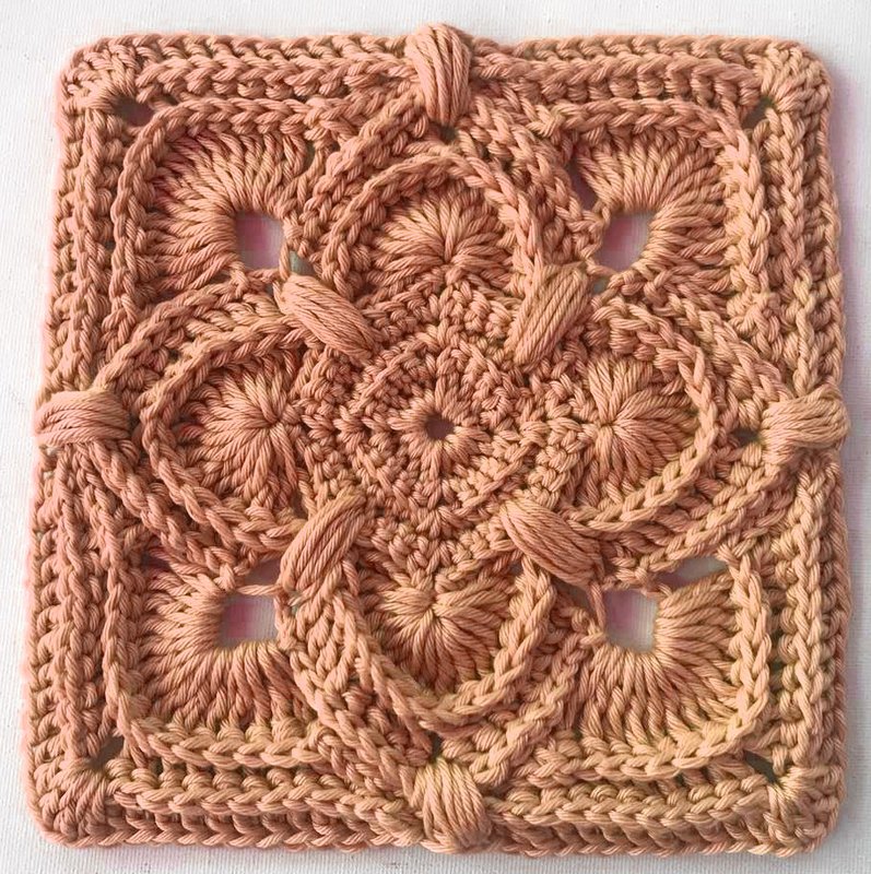 ein fertiges Granny Muster "TAFF" wiegt 53 gr und ist 21 cm breit und hoch