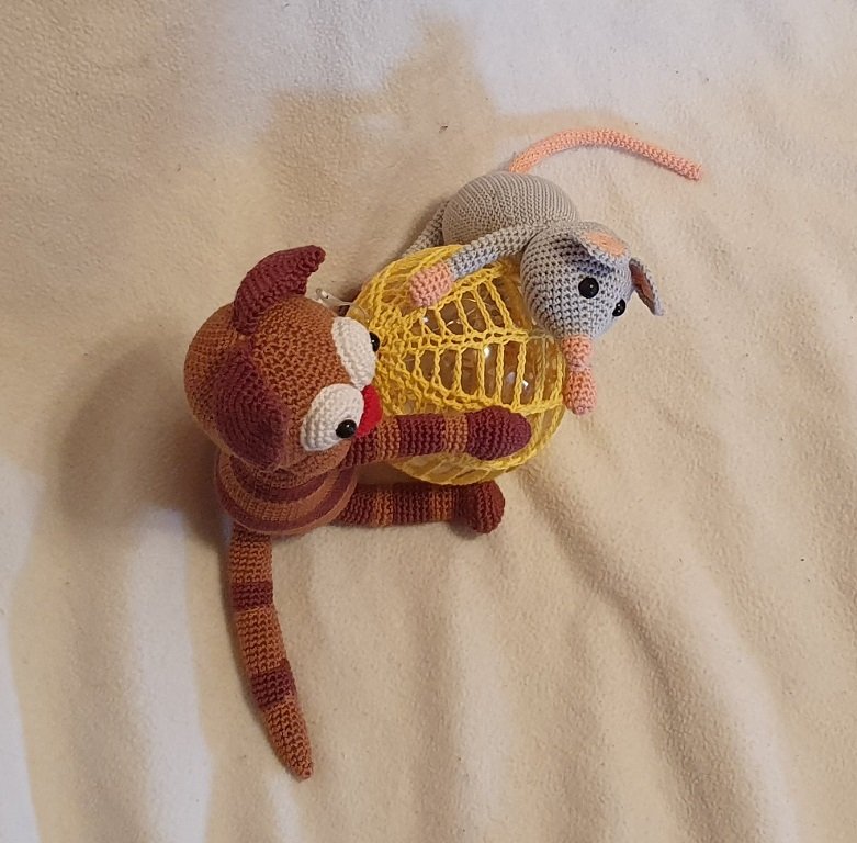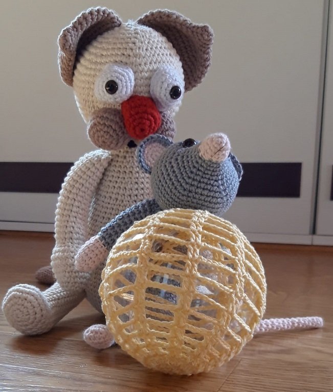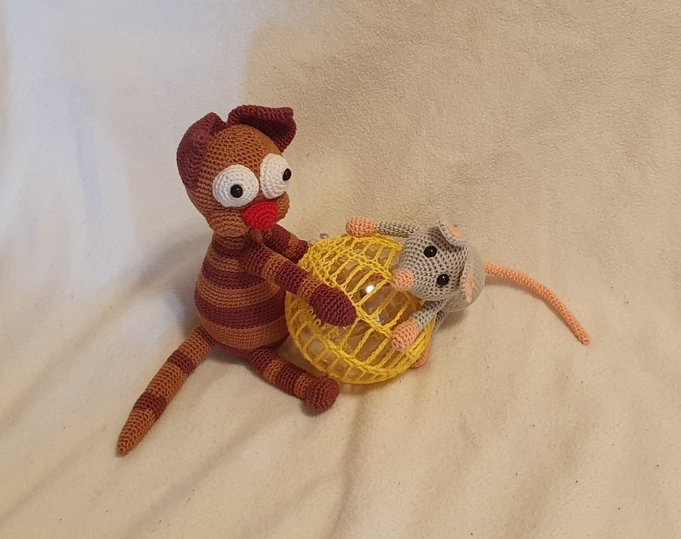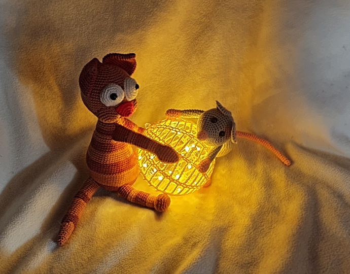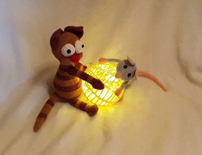 Mit dieser Anleitung kannst Du Dir eine LED-Lampe mit einer Katze und einer Maus häkeln