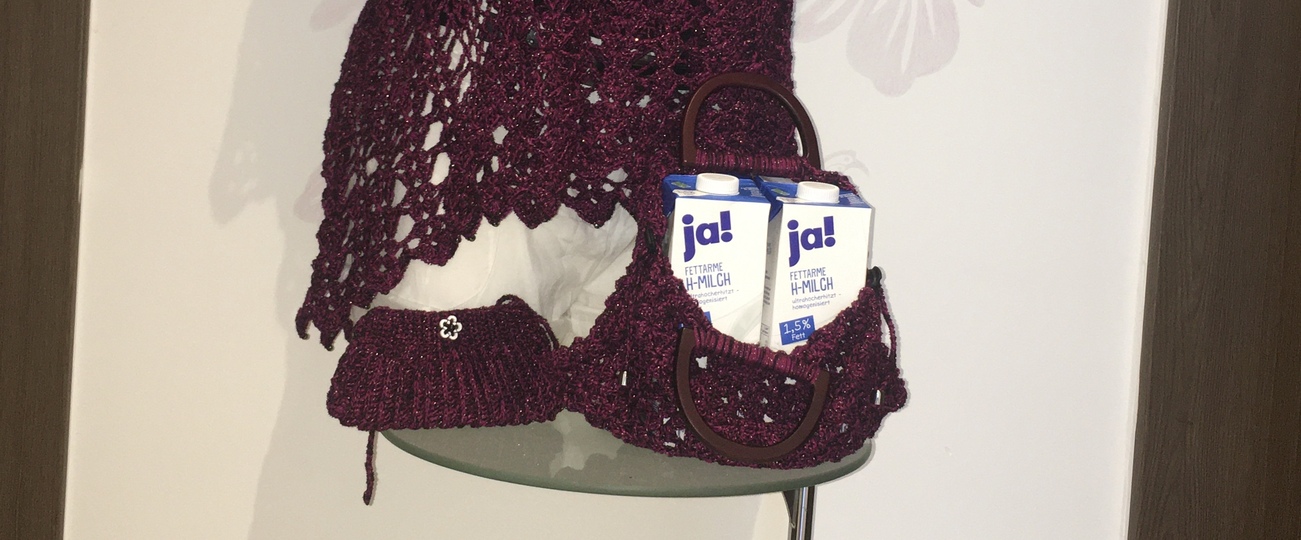 Häkel dir eine beliebig große Tasche mit einem Garn deiner Wahl. Eine kleine Mini-Bag, für kleine Dinge die nicht verloren gehen dürfen, runden diese Klemmi-Bag ab.