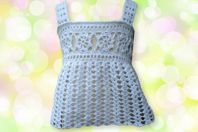 Da kann der Sommer kommen. Dieses gehäkelte Top sieht super über einem Shirt aus. Wenn man es länger häkelt, wird es ein Kleidchen. Man könnte es auch ohne Träger häkeln und es ist ein süßer Rock über T-Shirt und Leggins. Oder am Strand über einen Badeanzug. Ob in uni oder kunterbunt, dieses Top ist immer ein Hingucker.