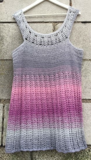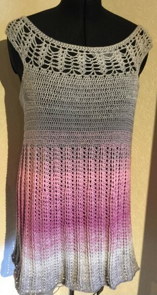 Es ist eine Häkelanleitung für eine luftige Sommertunika, die in vielen Größen nachgearbeitet werden kann.