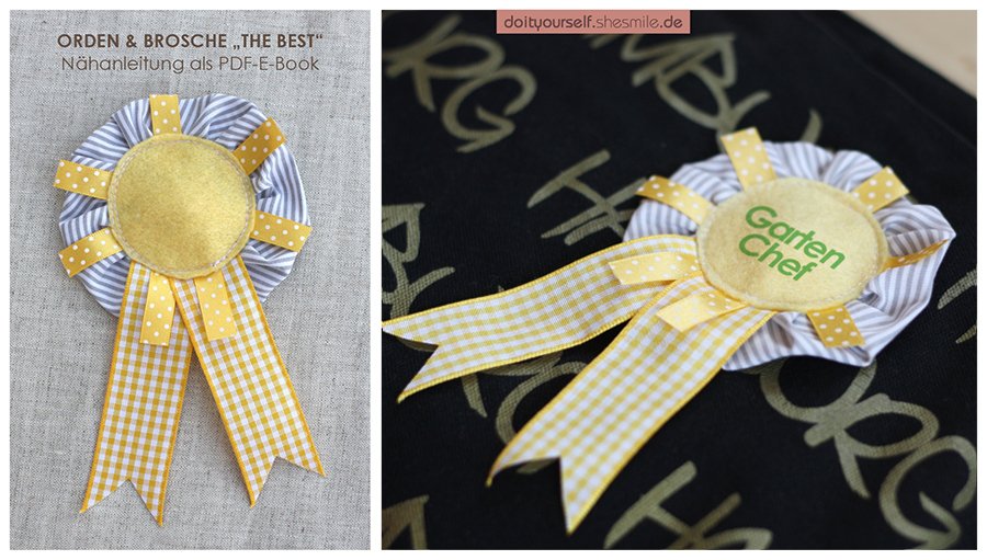 Von mir erstellte Nähanleitung samt passenden Schnittmustern für Orden und Broschen aus Stoff zum Anstecken oder Annähen.