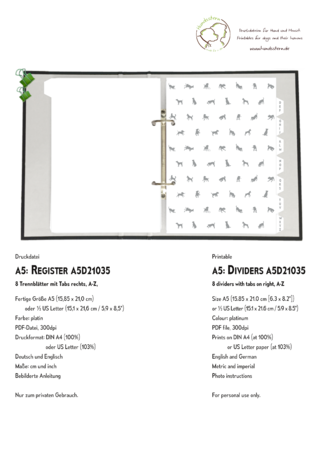 Druckdatei für Register Trennblätter (Divider), Einlagen für Ringplaner im Format A5