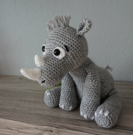 Hier bieten wir Ihnen die Häkelanleitung Kleines Nashorn Nelli an!