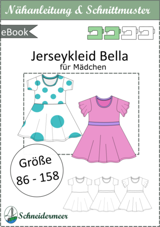 Entdecke das süße Modell „Bella“ – ein Jerseykleid mit glockigem Rockteil für Kinder! Dieses Schnittmuster bietet dir zwei Varianten: mit und ohne Taillenband, sodass du das Kleid ganz nach deinen Vorstellungen gestalten kannst. In die Seitennähte des Rockteils können praktische Nahttaschen eingearbeitet werden, perfekt für kleine Schätze. Der Rock ist knieumspielend und ideal für jede Gelegenheit.