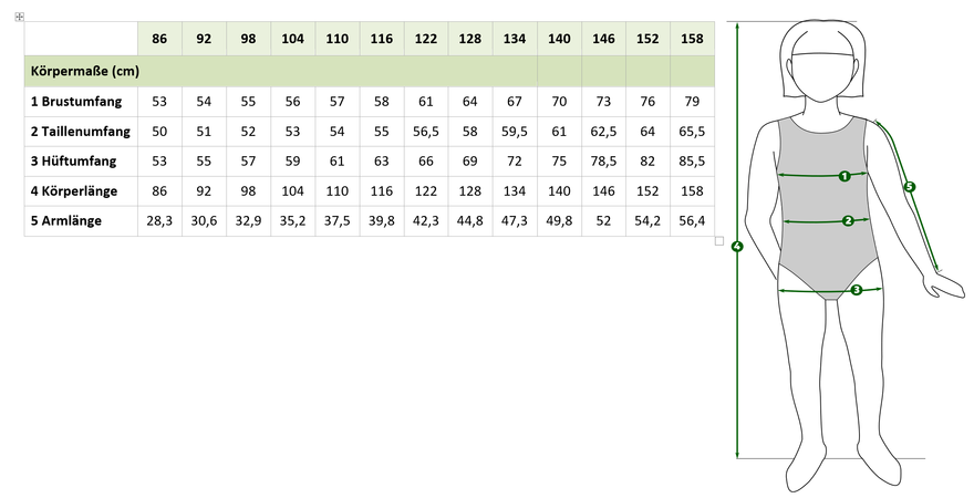 Das Schnittmuster kommt als Einzel- und Mehrgrößenschnitt von Größe 86 bis 158, als A4- und A0-Datei.