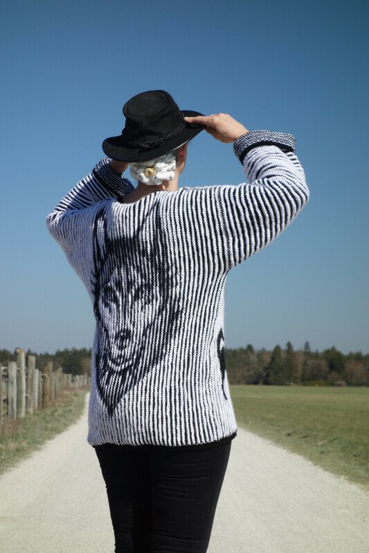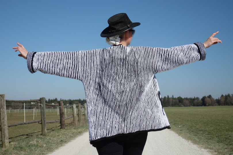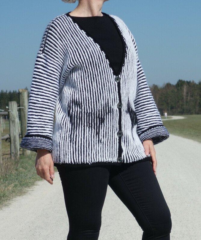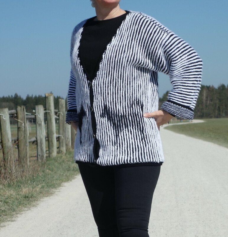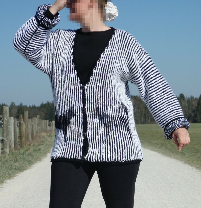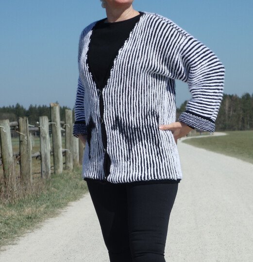 Diese Jacke ist in der Technik Illusionsstricken gearbeitet.