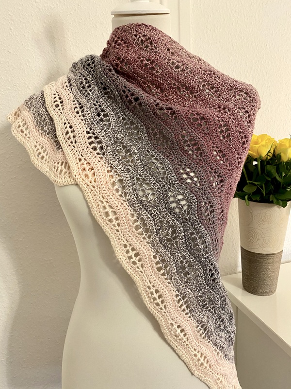 Mit dieser Anleitung kannst du dir ein wunderschönes, leichtes Dreieckstuch mit Wellenmuster selbst häkeln.