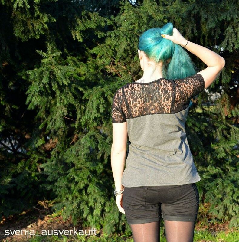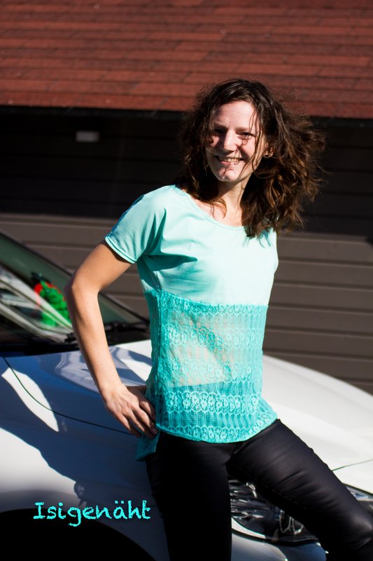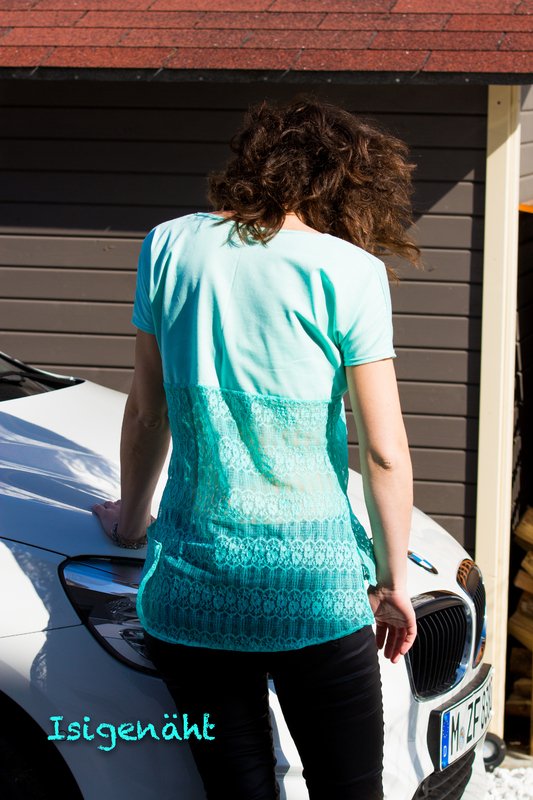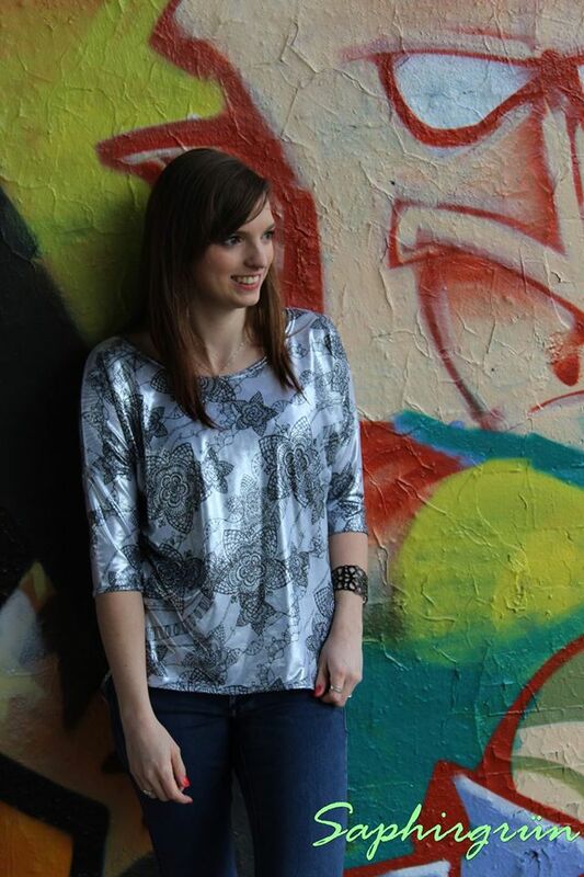 Mit diesem Ebook kannst du dir ein modisches Shirt mit dem gewissen Etwas nähen. Es hat leichte Fledermausärmel, die du mit angesetzten 7/8-Ärmeln verlängern kannst. Es ist gerade geschnitten und der Vokuhila-Look wird durch seitliche Schlitze noch verstärkt. Dadurch fällt das Shirt auch bei rundem Bauch oder Po sehr schön. Das Shirt geht mit seinem langen Rücken über jeden Po- so ist man auch bei vielen Bewegungen optimal angezogen und muss kein „Maurerdekoltée“ fürchten. Das Shirt sollte aus dehnbaren Stoffen genäht werden. Im Probenähen wurde erfolgreich Strickstoff, Nicky, Viskosejersey, Sweat und Jersey genäht. Es ist je nach Stoffauswahl optimal geeignet für warme Sommertage (luftiger Jersey), frische Herbst- (Sweatshirtstoff) oder auch kühle Wintertage (aus Strick).