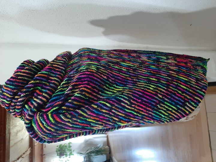 Es kann auch ohne Abnahmen als Decke oder Schal gestrickt werden.