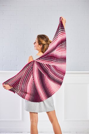 Die geniale Wirkung wird hier mit verkürzten Reihen erzielt. Dass dies auch beim Häkeln möglich ist, zeigt dieses Tuch.