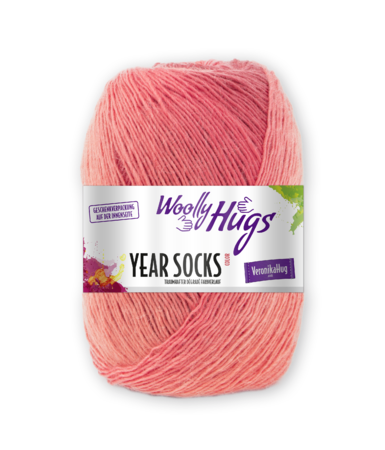 Woolly Hugs YEAR SOCKS (75 % Schurwolle, 25 % Polyamid, Lauflänge ca. 400 m/100 g) von L & K: je 300 g Pink (Farbe 04) und Grau (Farbe 12)