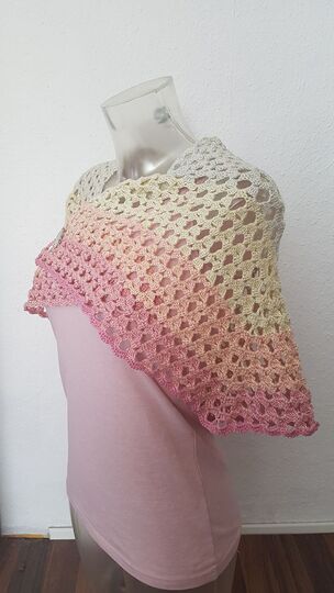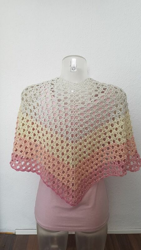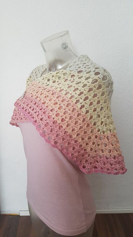 Das Tuch kann beliebig groß gehäkelt werden. Mit einer Lauflänge von 800m bekommt ihr eine ca Größe von 130cm * 48cm