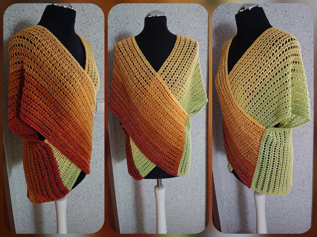Ich habe für Konfektionsgröße 36 1200m Lauflänge eines 3 fädigen Farbverlaufgarns benötigt.