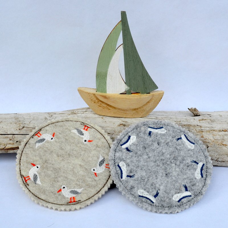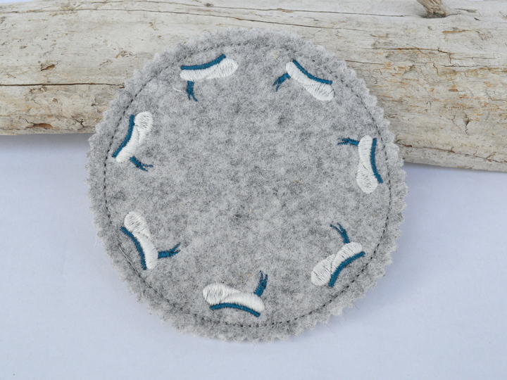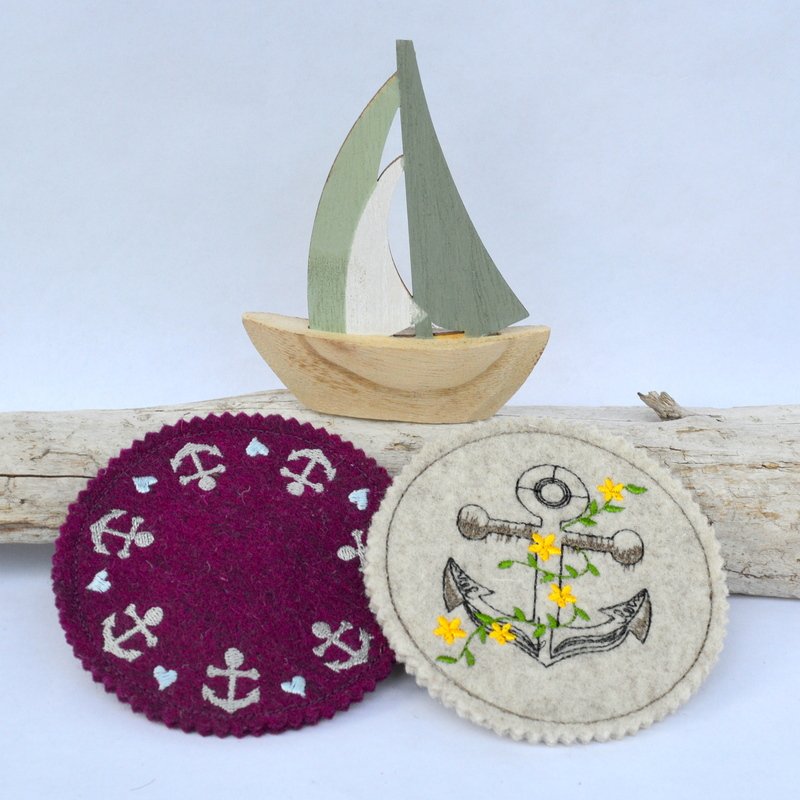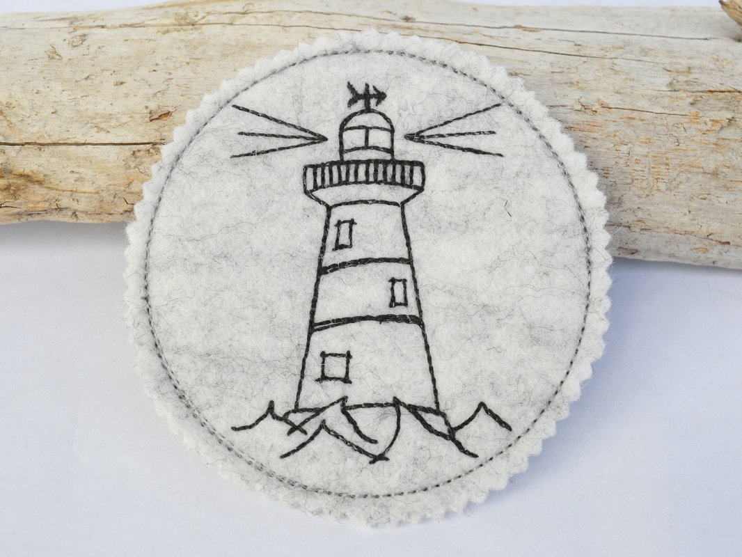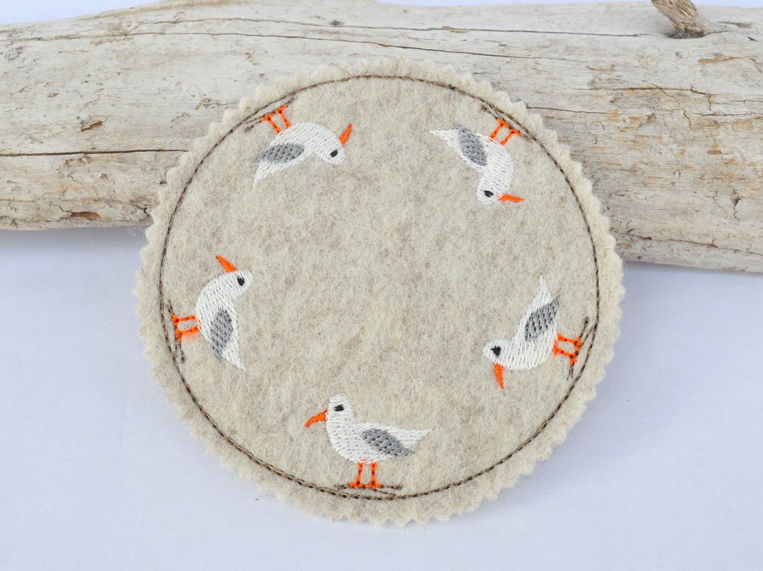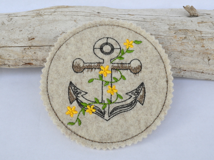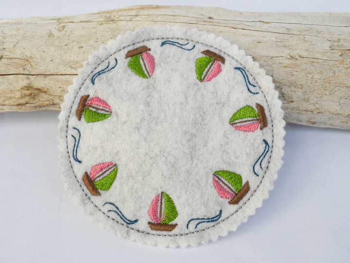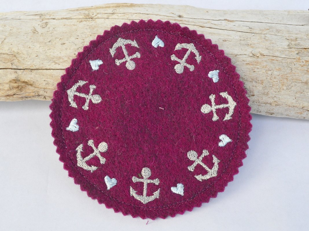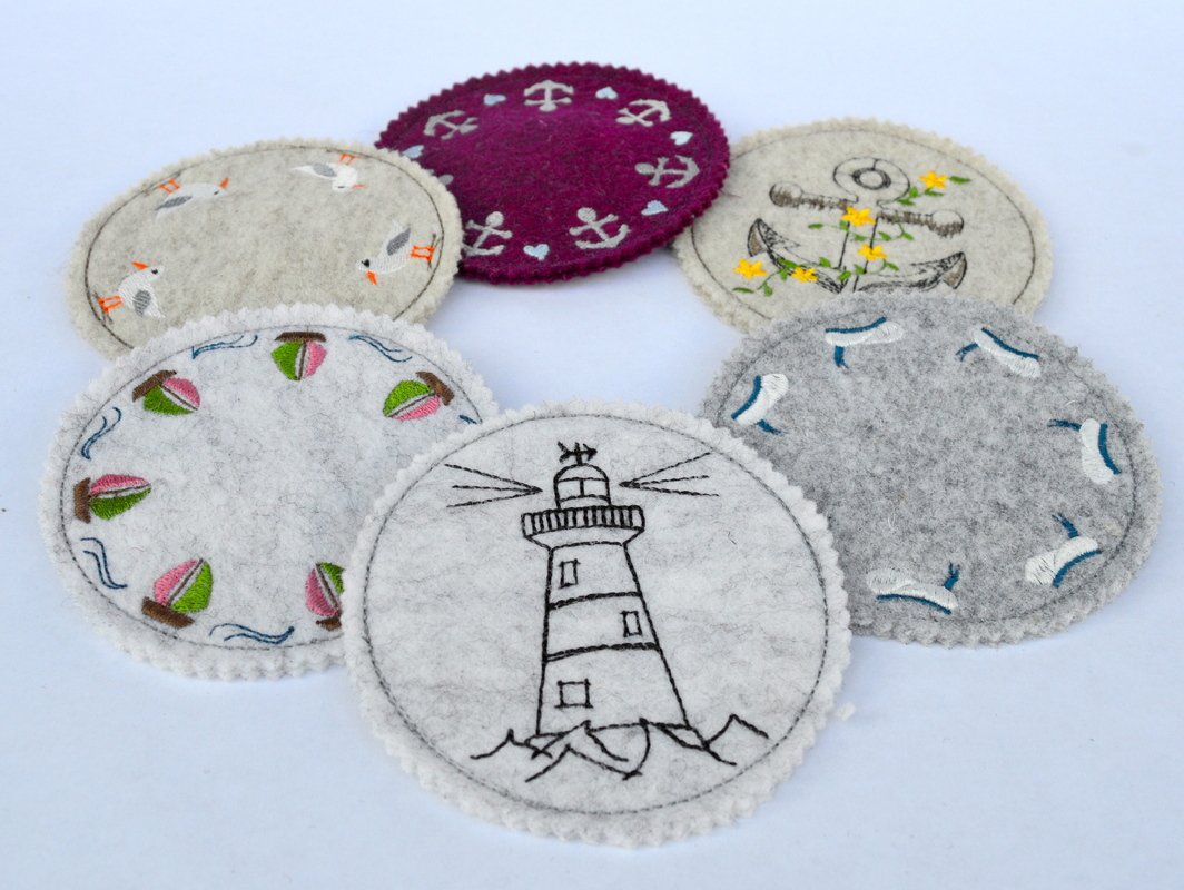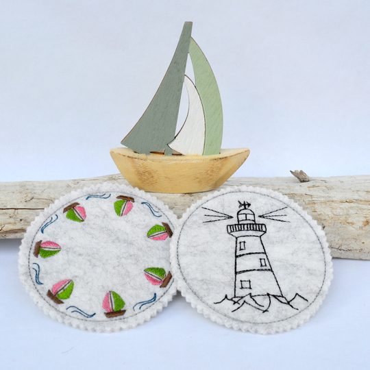 Schnell gestickte Untersetzer mit maritimen Motiven. Eine liebevolle Deko auf dem Kaffeetisch, beim Grillen, Sommerparty, Geburtstagsfeier, gestickt auf Wollfilz oder Stickfilz.