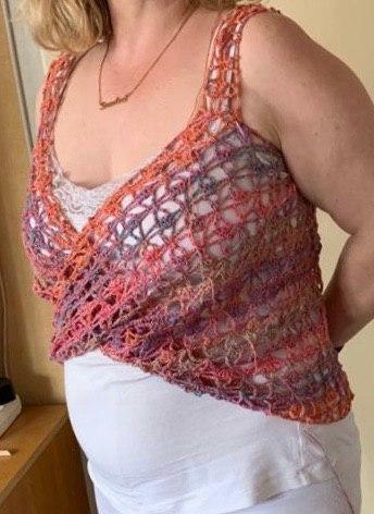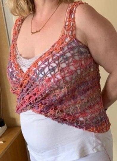 Die Anleitung ist sowohl schriftlich, als auch in Häkelschrift in der Anleitung zu finden. Das Top kann in allen Größen gehäkelt werden.