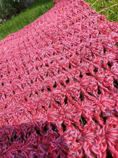 Wer meine Anleitungen schon kennt, der weiß, dass ich gerne zwischen den Maschen der Vorreihe einsteche, anstatt in den Maschenkopf, weil ich das Maschenbild interessanter finde. Das ist aber auch schon die einzige Besonderheit des Musters und wer das nicht mag, kann auch ganz normal einstechen, was überhaupt kein Problem ist. Dieses Tuch wird Deine Sommerlaune versüßen! Legt es Dir um die Schultern, wenn die Abendluft ein wenig abkühlt und genieße trotzdem den Sonnenuntergang. Ich wünsche jetzt schon viel Spaß!