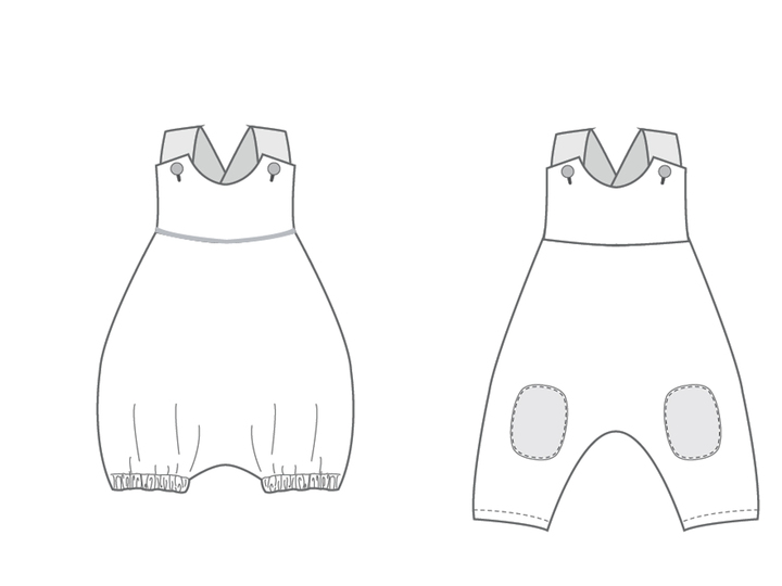 ✔ Zwei-in-eins Schnittmuster-Bundle: Sommer-Strampler und lange Latzhose mit niedlichen Kniepatches