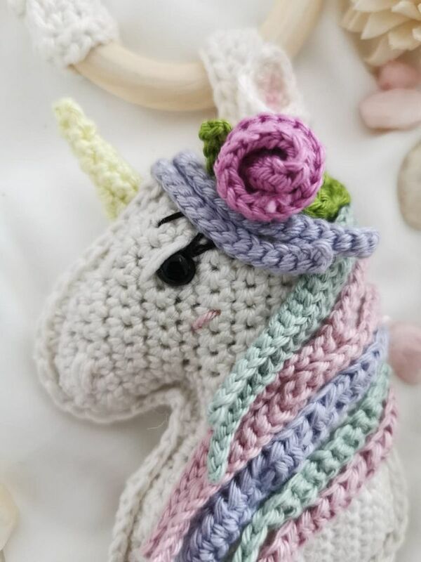 Mit Hilfe dieser Anleitung kannst du die Babyrassel Einhorn nacharbeiten. Sie ist ein zauberhaftes Geschenk zur Geburt, zum Geburtstag oder ein absoluter Hingucker auf jeder Babybarty. Die ist für jeden Einhorn Fan ein Must- have. Ohne den Holzring ist sie auch super für großere Kinder geeignet oder einfach als Taschenbaumler.