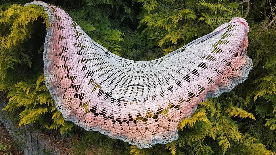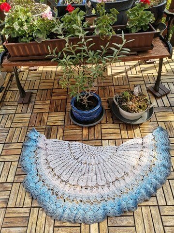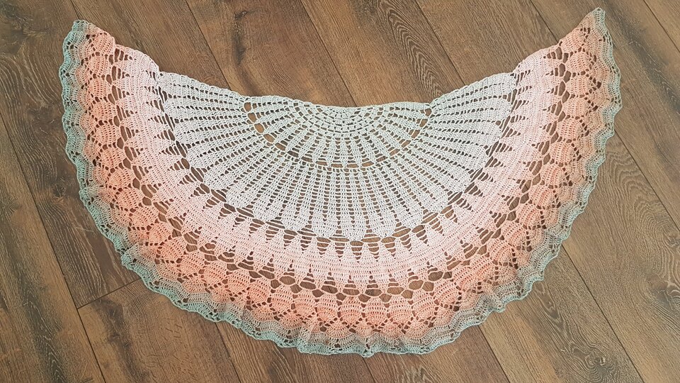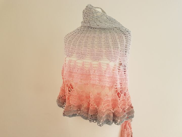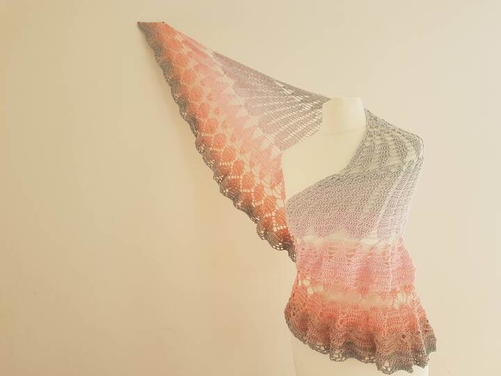 Das halbrunde Tuch Margarite ist der perfekte Begleiter für die wärmeren Jahreszeiten. Luftig leicht schmiegt es sich sanft um deine Schultern.