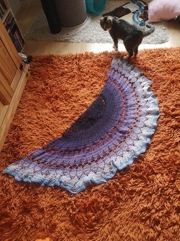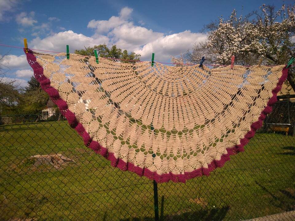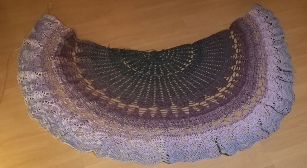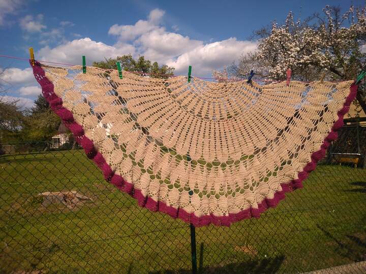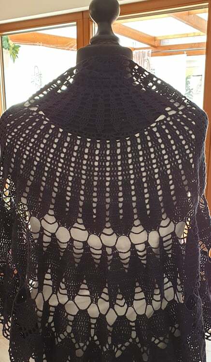 Maße etwa 170 - die Größe ist aber abhängig von der Nadelstärke, der Festigkeit der einzelnen Maschen und dem verwendeten Garn.