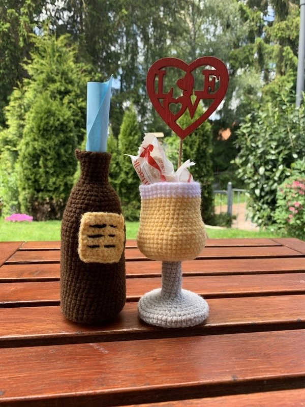 Die Häkelanleitung besteht aus dem Bierglas und der Bierflasche.