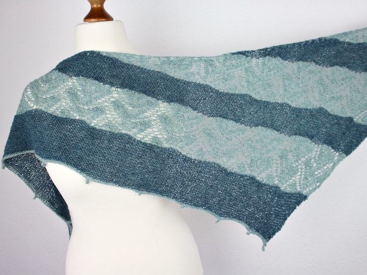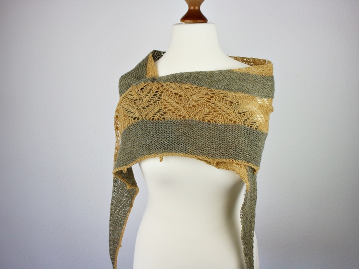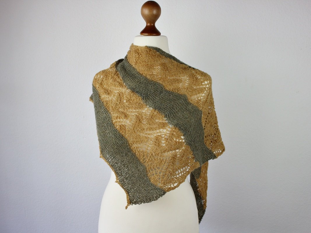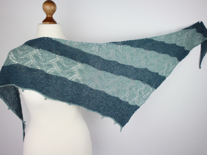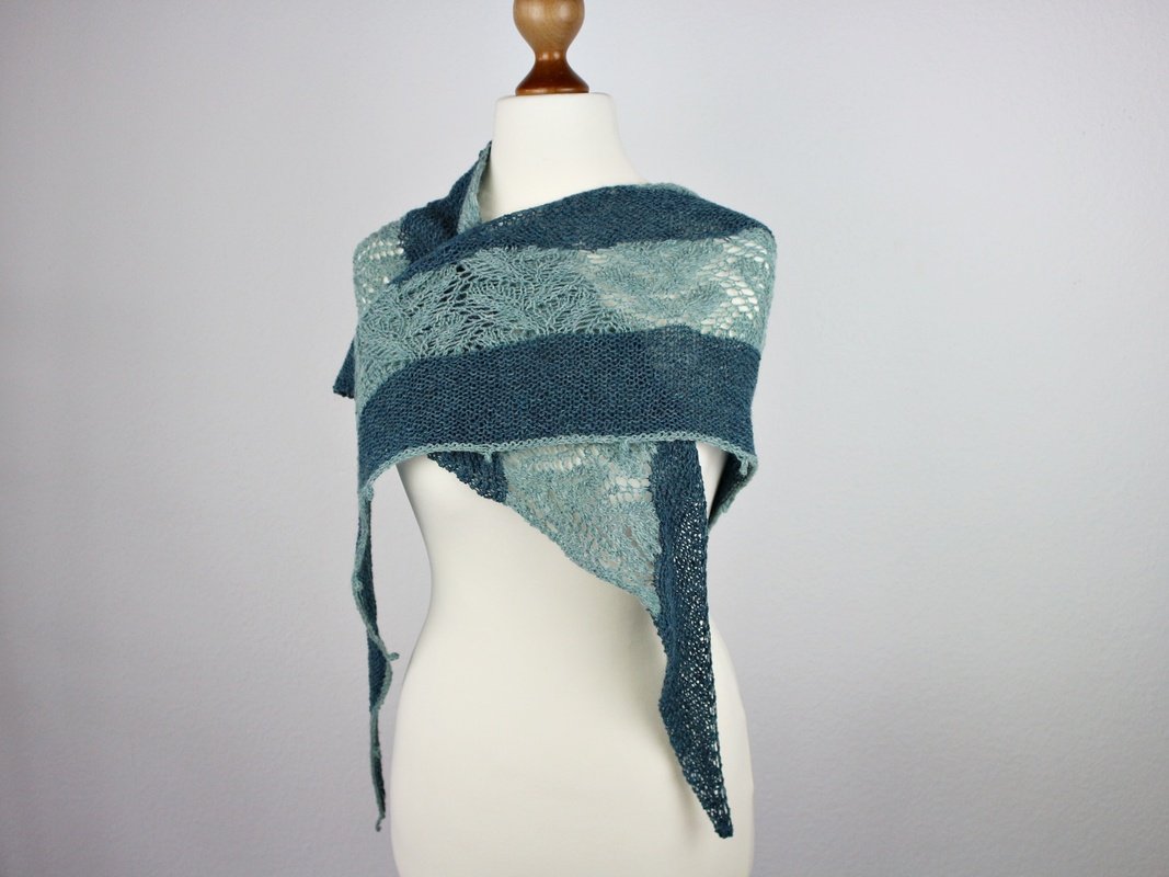 Das Tuch „Olivia“ wird an einem Stück und ohne Nähte gestrickt. Entspannte kraus rechts Teile wechseln sich mit einem etwas anspruchsvolleren Lacemuster ab, dass ein wenig Konzentration erfordert. In der Anleitung ist eine Strickschrift zu finden, nach der gearbeitet werden kann aber es gibt zusätzlich auch noch die Möglichkeit, nach geschriebenen Instruktionen zu arbeiten. Je nach dem was bevorzugt wird. Wenn nur nach der Strickschrift gearbeitet wird, dann ist es ausreichend die Seiten 1-7 auszudrucken.