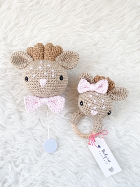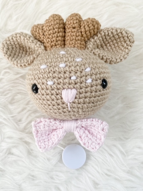 Mit dieser Häkelanleitung kannst du deine eigene süße Rentierkopf-Spieluhr häkeln.