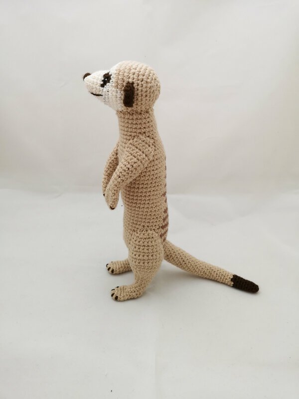 In dieser Anleitung erkläre ich, wie Ihr ein realistisches Erdmännchen in 2 verschiedenen Varianten häkeln könnt (stehend und hockend).