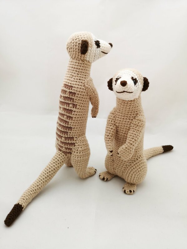 Werden Sie mit dem angegebenen Garn gehäkelt, haben sie später die Größe wie echte Erdmännchen.