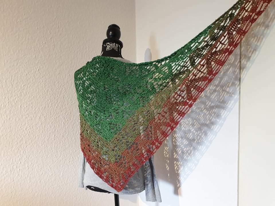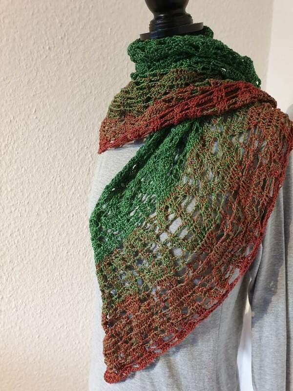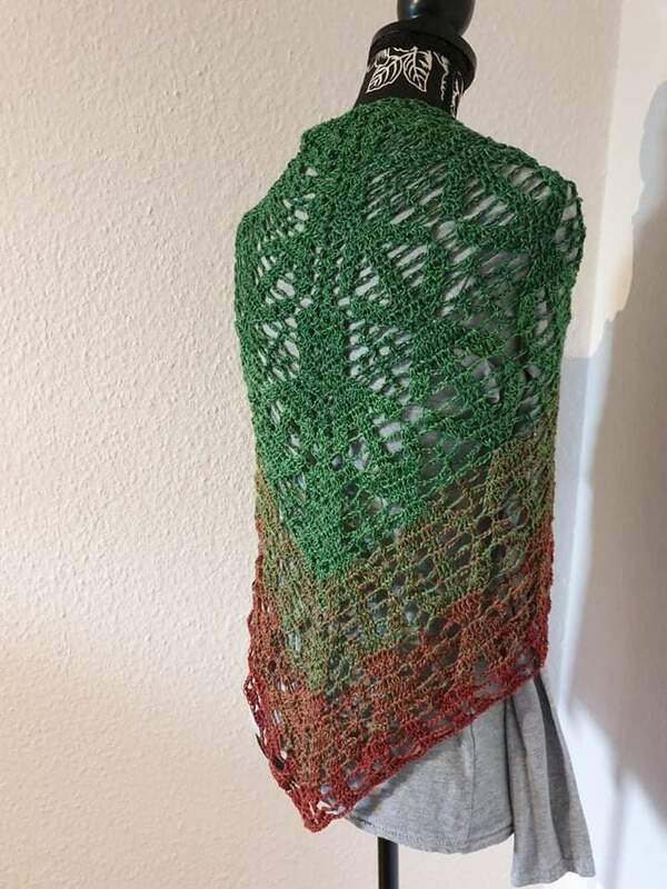 Die Anleitung zum Tuch besteht aus schriftlich ausformulierten Reihen und beinhaltet eine Häkelschrift.