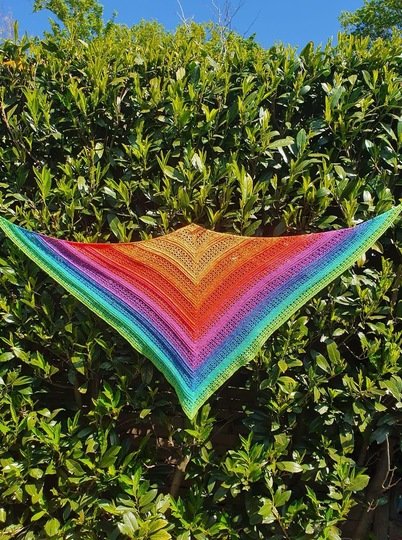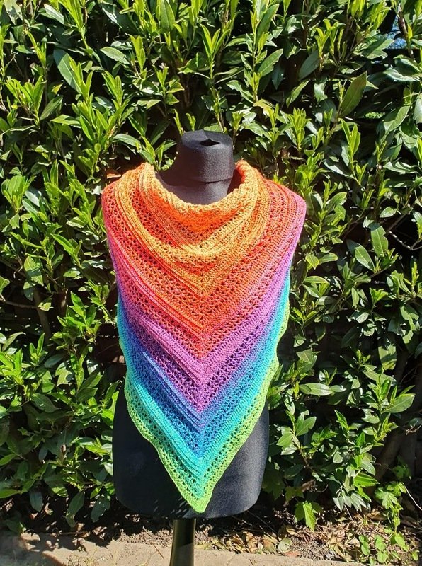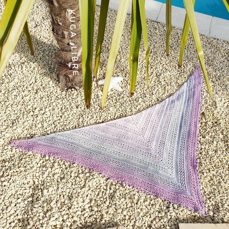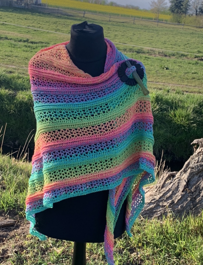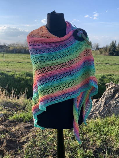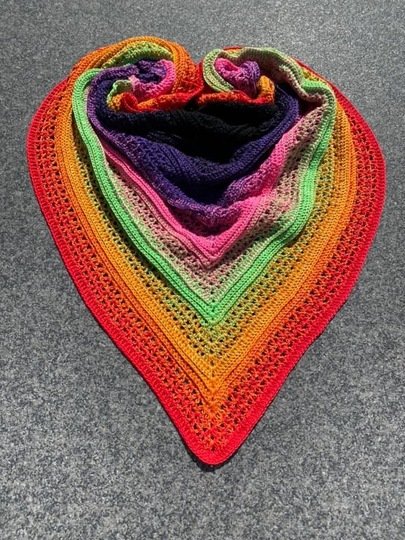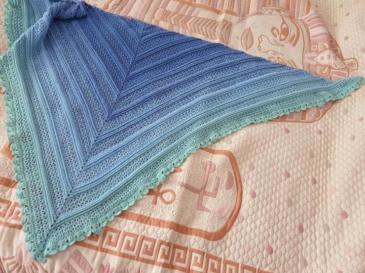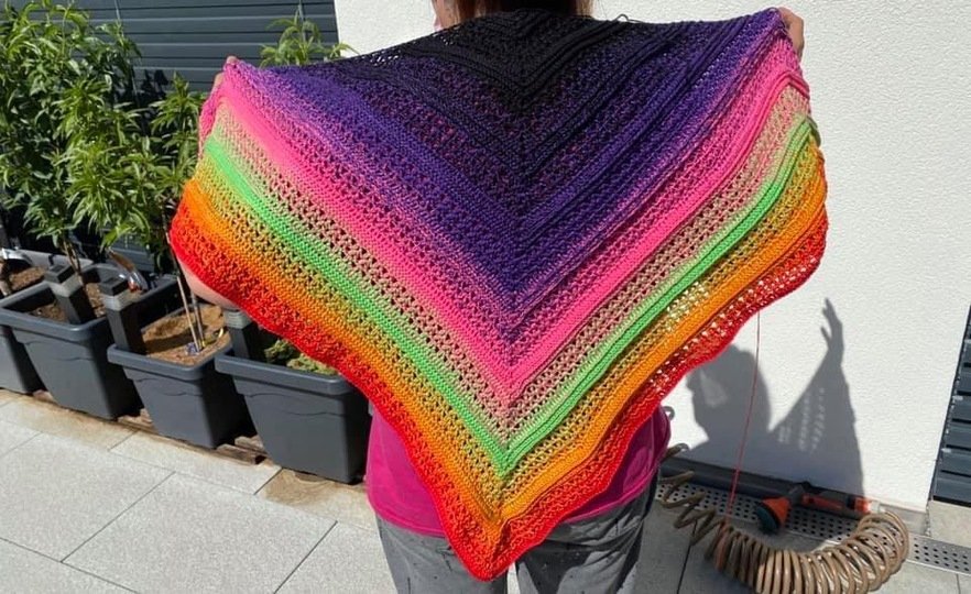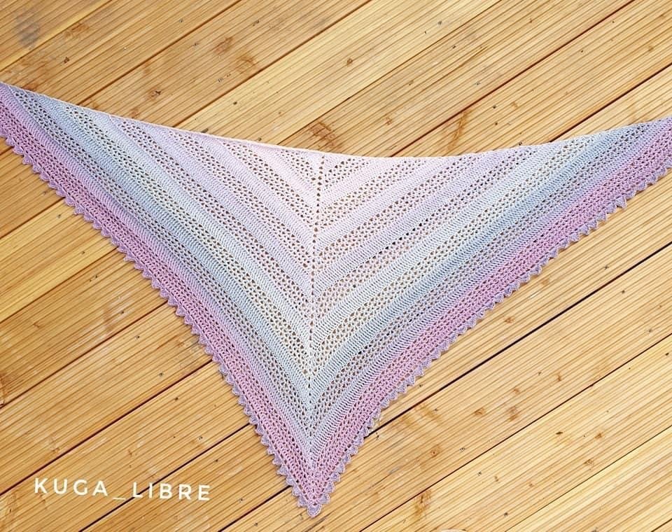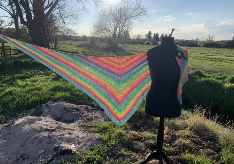 Das Tuch ist in jeder beliebigen Größe machbar. Mein Tuch ist bei 1200m mit 3Fäden und Nadelstärke 3.0 ca 230x87cm groß geworden.