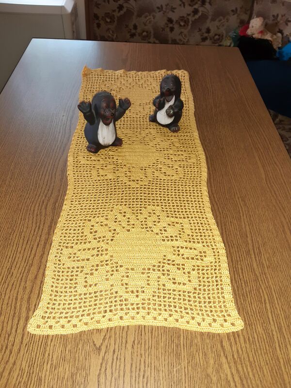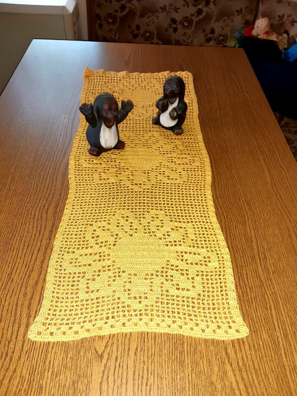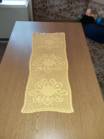 Der Tischläufer kann auch inviduell länger oder kürzer gehäkelt werden (in Anleitung beschrieben)