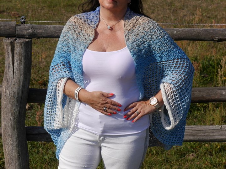 Ein schicker Seelenwärmer/Kimonojacke für den Frühling oder Sommer.Einfach schnell überziehen und sich wohlfühlen und vor allen Dingen immer angezogen sein.Egal ob man ein Top unterzieht oder ein Shirt ein Seelenwärmer geht immer.