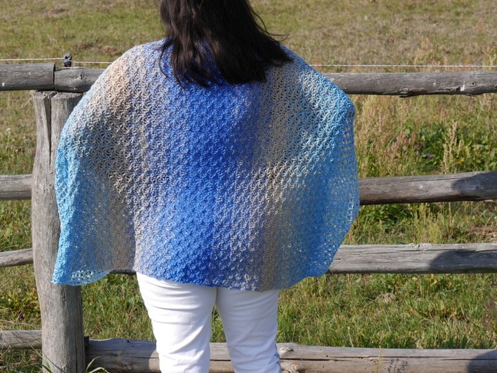 Die Jacke/Seelenwärmer fällt gerade herunter.Tragbar für alle Größen und von der Länge und Größe her anpassbar.