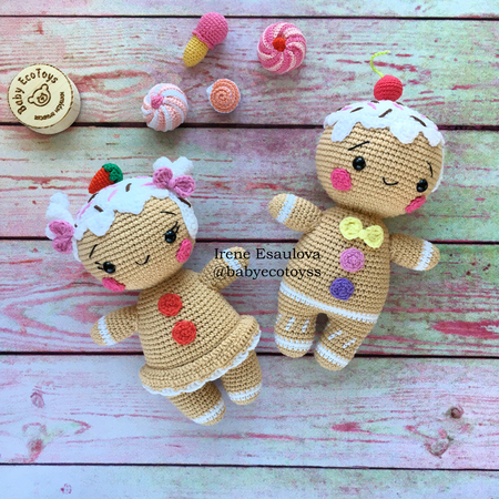 Mit dem angegebenen Garn bzw. den Materialien wird das Lebkuchenmännchen ca. 17-18 cm