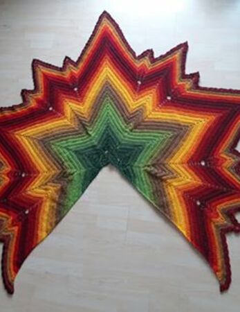 Das wunderschöne Ahornblatt ist ein Tuch, was sich dank des eingängigen Musters entspannt bei gemütlichen Fernsehabenden häkeln lässt.