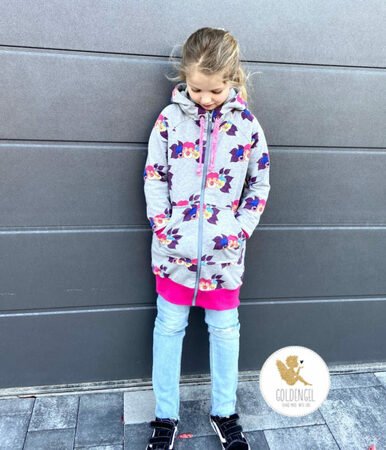 Mit dem Longjacket Nala bist du bestens für die Übergangszeit gerüstet. Die hübsche Jacke wird aus Sweatstoffen mit Beleg genäht und ist dadurch kuschelig, aber gleichzeitig nicht zu dick. Ob im angesagten Colour-Blocking-Style, ganz schlicht, mit aufregenden Mustern oder tollen Details – Nala ist eine wunderbare Begleitung, die du wahlweise mit Kapuze oder Kragen nähen kannst.