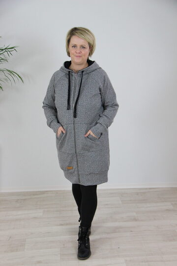 Mit dem Longjacket Nala bist du bestens für die Übergangszeit gerüstet. Die hübsche Jacke wird aus Sweatstoffen mit Beleg genäht und ist dadurch kuschelig, aber gleichzeitig nicht zu dick. Ob im angesagten Colour-Blocking-Style, ganz schlicht, mit aufregenden Mustern oder tollen Details – Nala ist eine wunderbare Begleitung, die du wahlweise mit Kapuze oder Kragen nähen kannst.