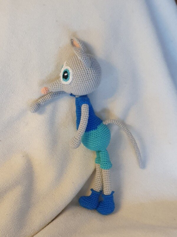 Ratturo wird mit der angegebenen Wolle (Baumwolle) und Häkelnadel (3) ca. 35 cm lang.