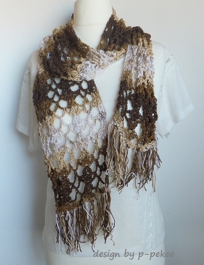 Das gehäkelte Tuch ist sehr vielseitig verwendbar. Es hat ein schönes Netzmuster, wirkt aber dennoch edel. An den Enden sind Fransen angebracht.