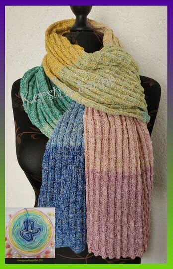 Ein Schal, der mit viel Abwechslung gestrickt wird, da kommt keine Langeweile auf, das Muster lässt sich leicht merken.