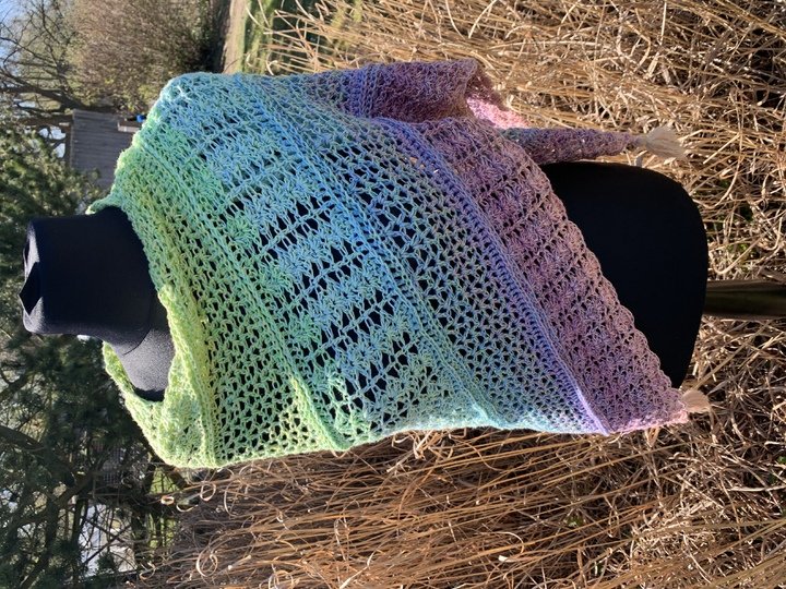 Das Tuch kann in jeder beliebigen Größe gearbeitet werden. Meines ist ca 218x88cm groß geworden- ohne Erweiterung.