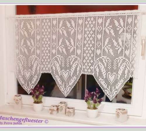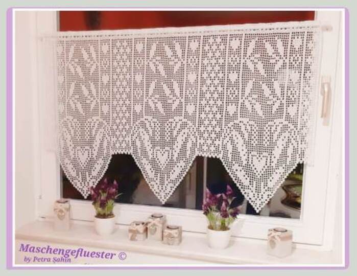 Da alles gut bebildert und zusätzlich jeder Abschnitt extra aufgeführt ist, ist die Gardine einfach nachzuarbeiten.