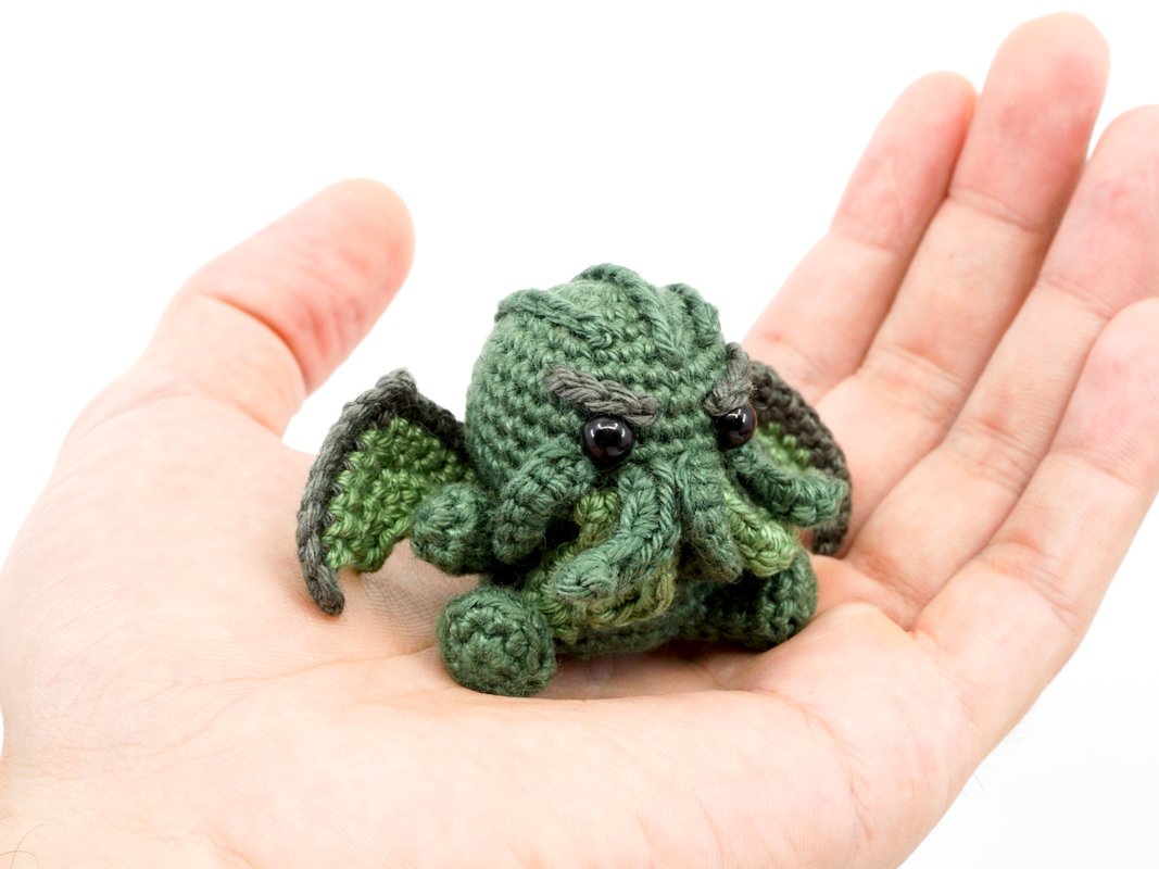 Dieser kleine Cthulhu lässt sich schnell häkeln und eignet sich perfekt als Deko Figürchen, Geschenk oder Schlüsselanhänger.