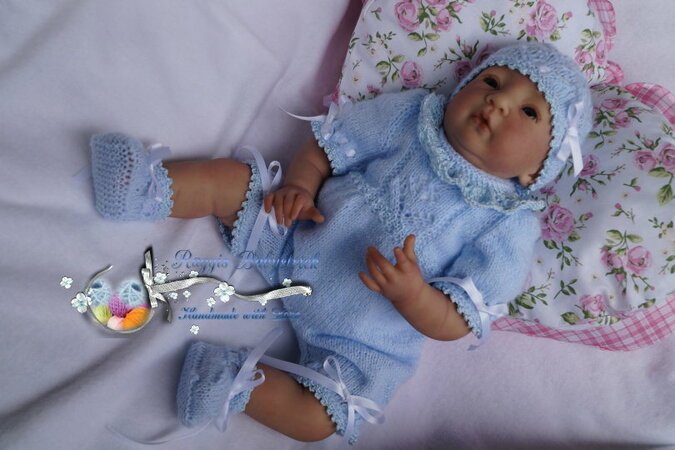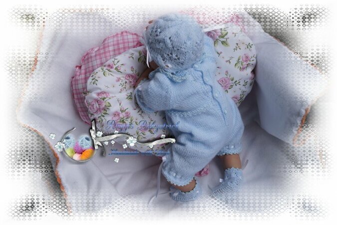 Strickanleitung für ein wunderschönes Set, 3-teilig für Babys & Reborns, Gr. 38 - 40 Das Set ist aus Babysoftwolle Nd. - Nr. 2,75 gestrickt. Die Anleitung ist sehr genau beschrieben und mit vielen Fotos. Du kannst mit dieser Schritt – für – Schritt – Anleitung dieses Set leicht nacharbeiten.